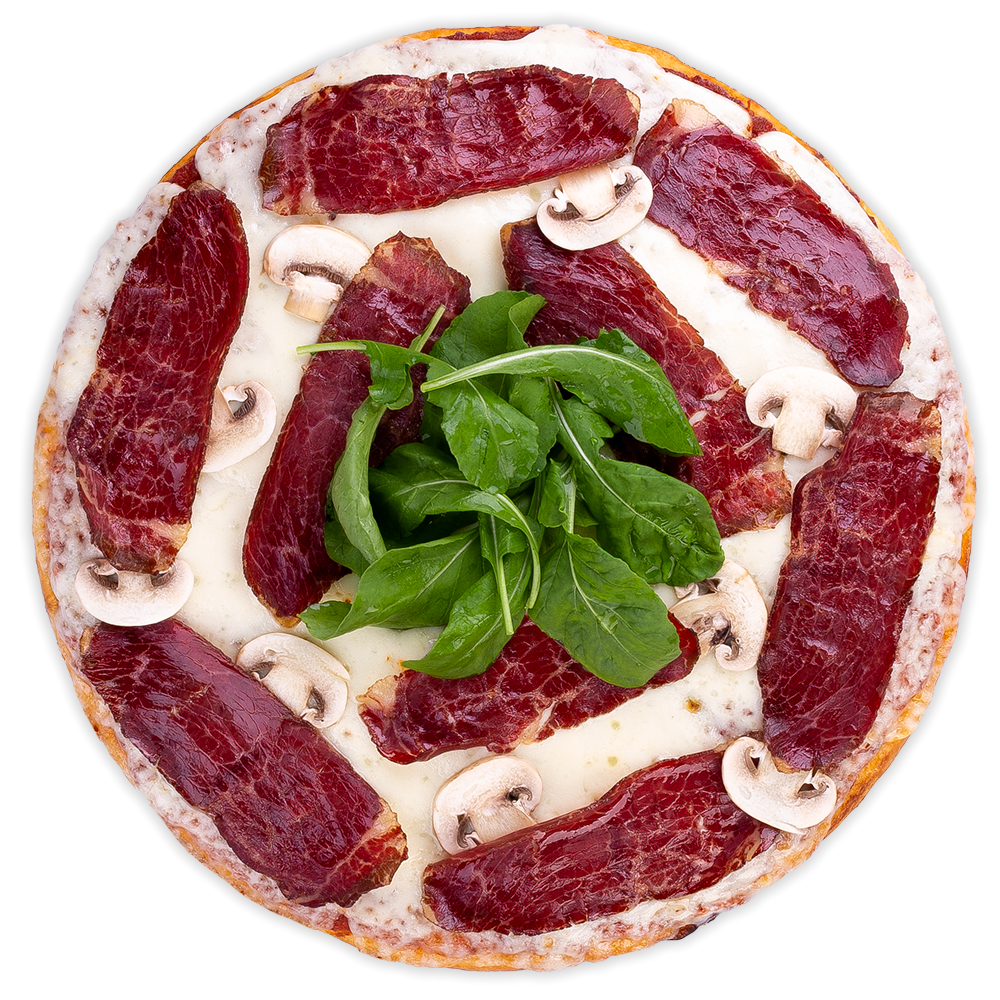 Vili sos, mozarella, kavurma, kekik, rokaPastırmalı Pizza